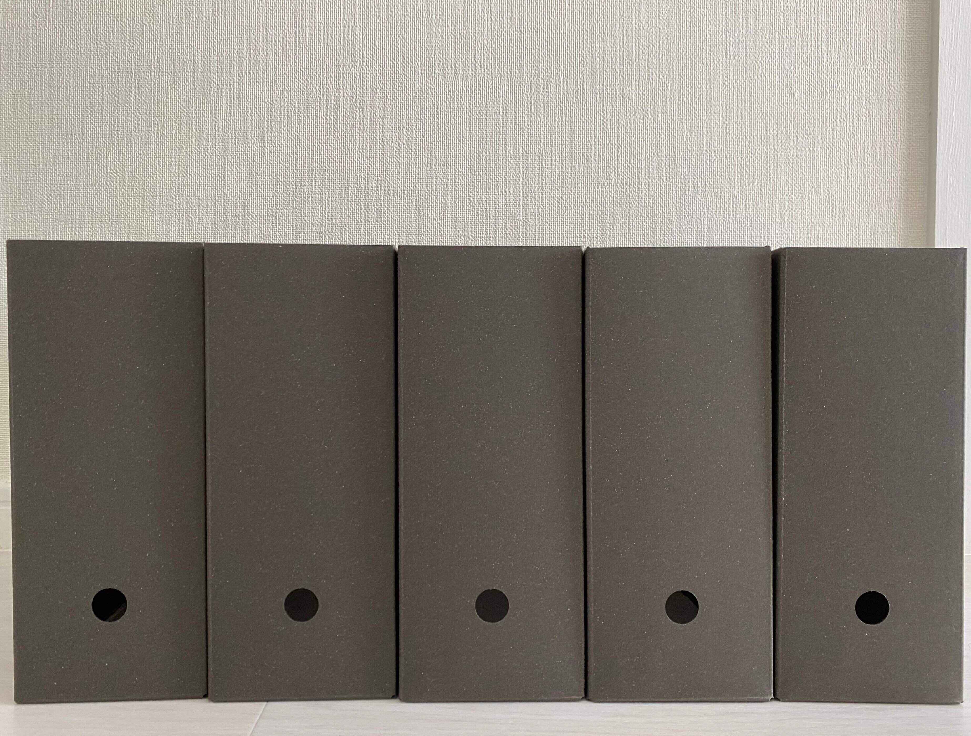 今回ご紹介するのは無印良品の「ワンタッチで組み立てられるダンボールファイルボックス5枚組」。価格は890円(税込)です。サイズは約幅10×奥行32×高さ25cmで、A4用紙が入る大きさです。