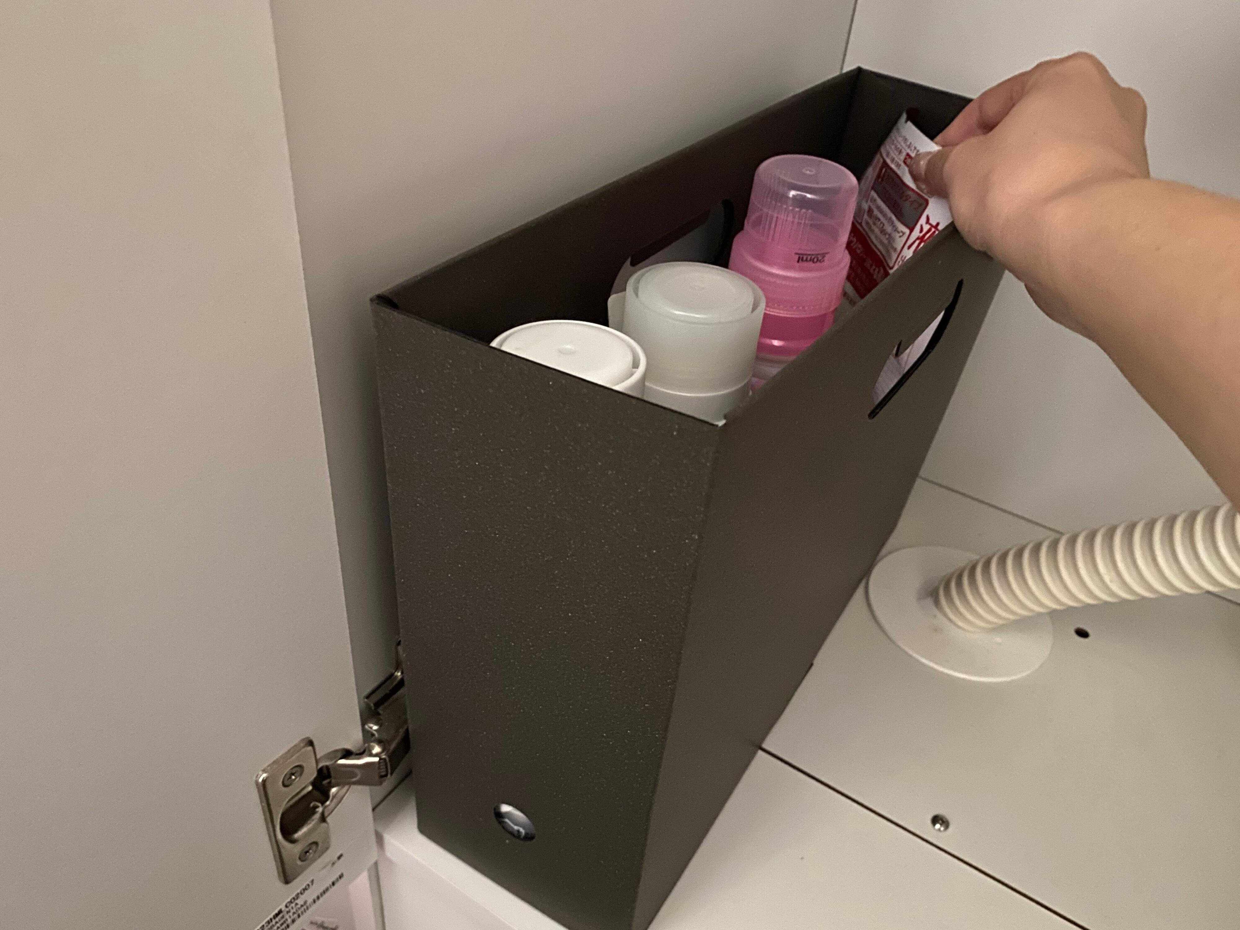 このときは洗面台下の収納に使いましたが、キッチンであれば洗剤やスポンジ、ゴミ袋ストック収納にしてもよいです。汚れてしまっても無印ならまた買い直せるのもうれしいポイント!