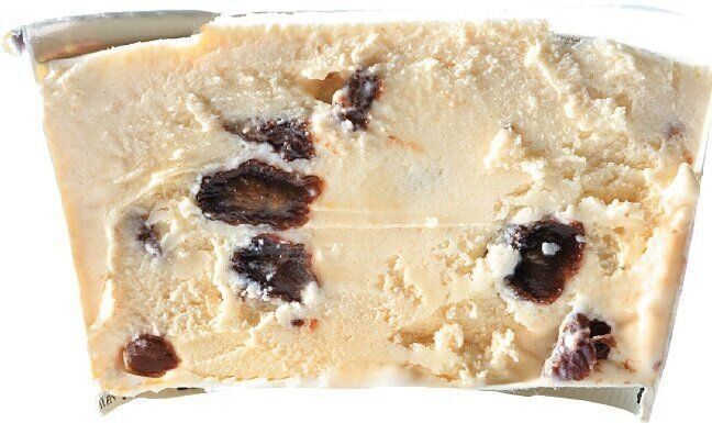 (ク)「秋冬限定だったラムレーズン味。ラム酒の香りと風味を増して通年販売品として新登場!レーズンもこのとおり、どっさり。かむたびにじゅわっと広がる香り、もう幸せです」。