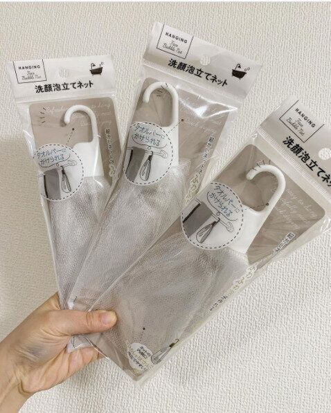 こちらの洗顔泡立てネットは、ネット自体にフックがついているのでそのままタオルバーにかけることができる優れものです。これさえあれば今までフックが外れたり落ちたりするストレスから解放されること間違いなし。