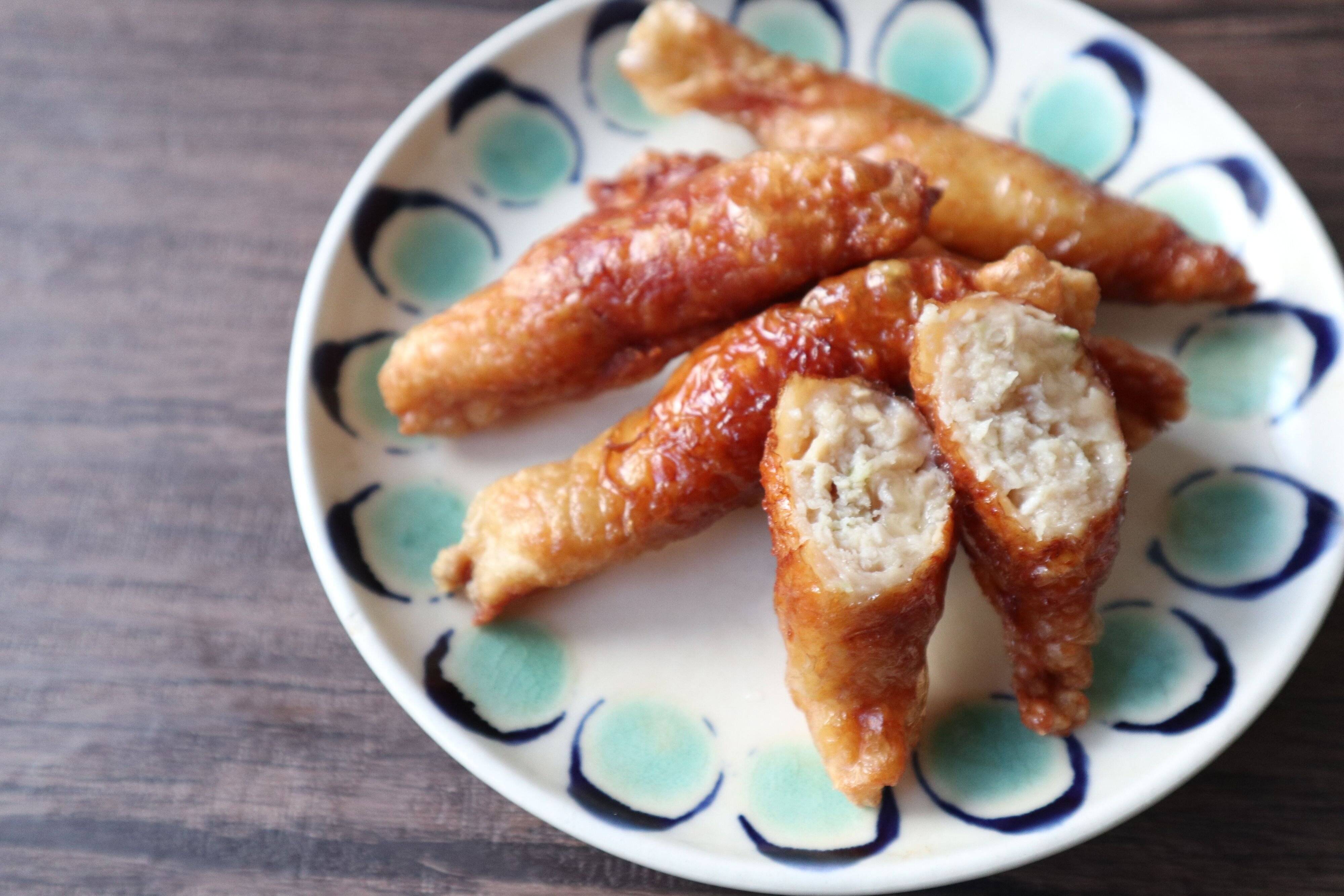 商品名のとおり、鶏皮でぎょうざの具材が包まれています。サイズは約10cmで大きめ!