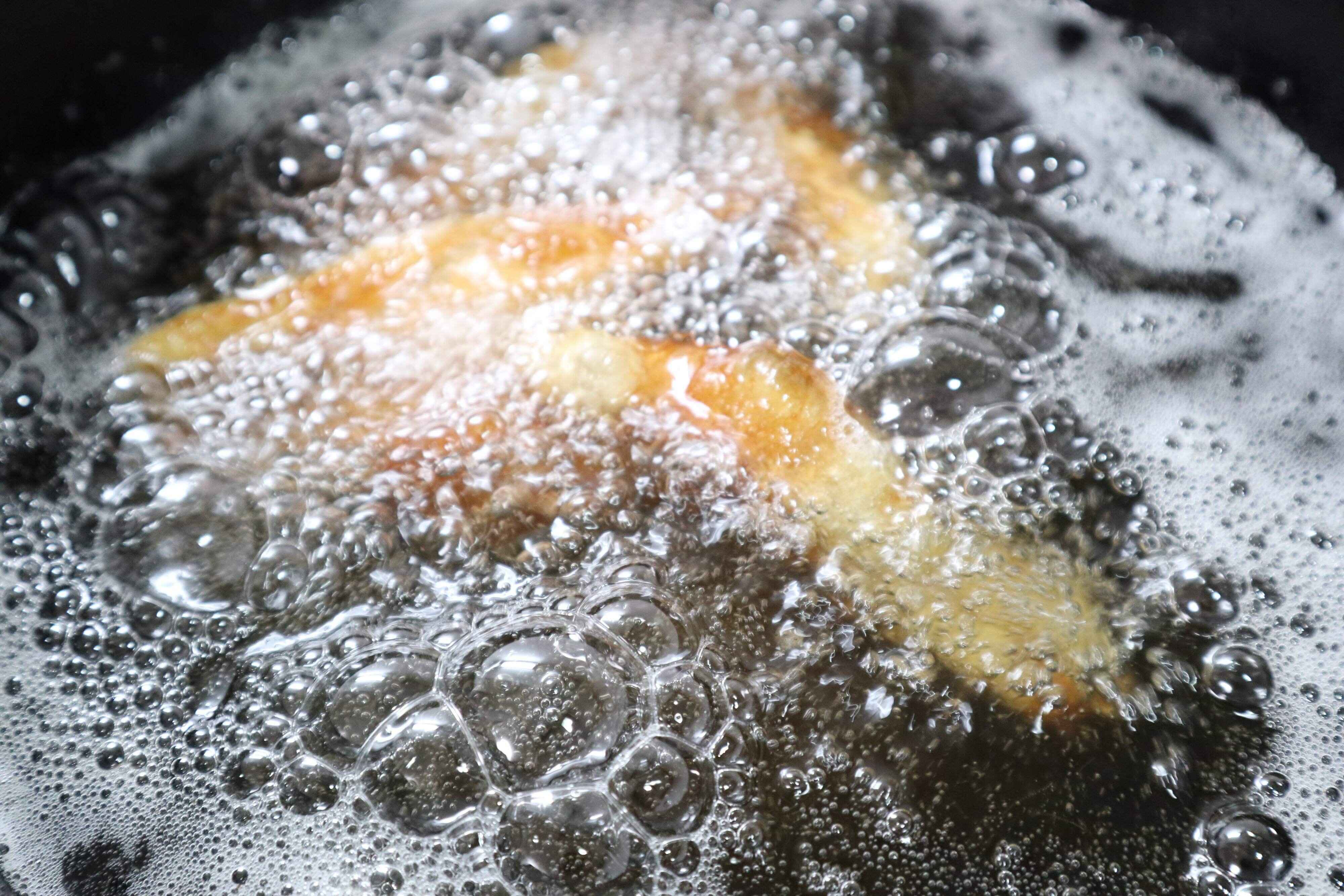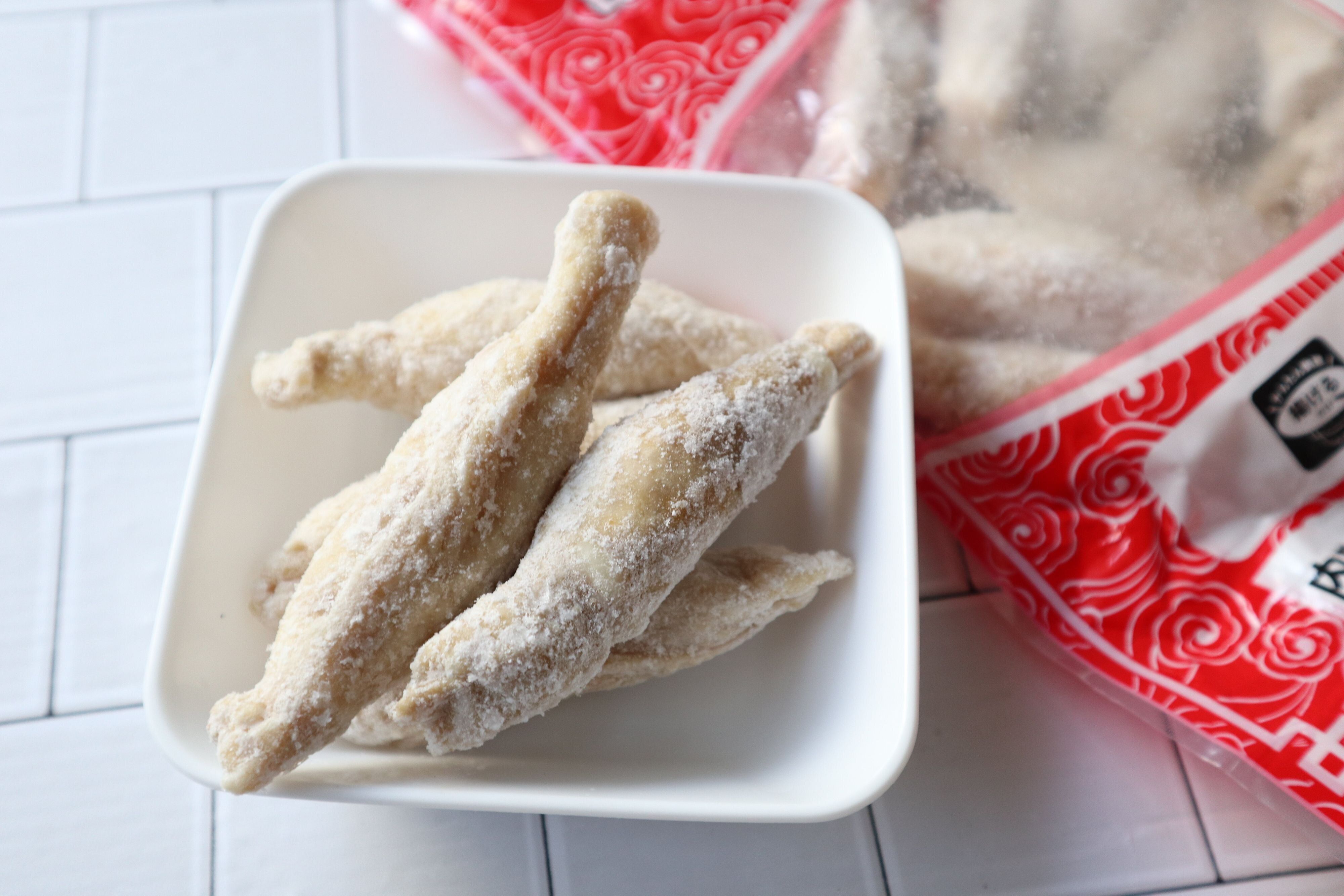170度の油で5分揚げれば完成!こんがりきつね色が食欲をそそります。
