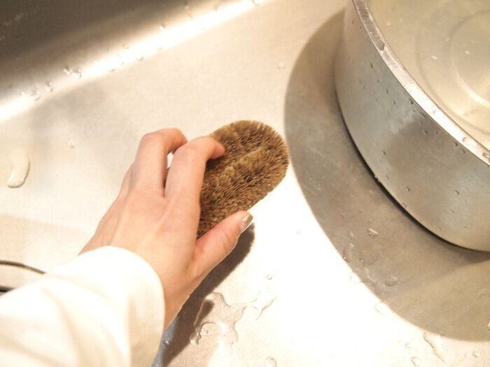 無印良品の「たわし」の最高なところはまず120円(税込)というお財布にやさしい価格であるということ。ダメになったらまた買えばいいやと思える親切プライス。そしてい一般的なたわしと違い、少し小ぶりにできているのでこまかいところが掃除しやすいという利点もあります。