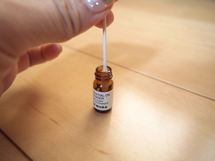 自分の好きな香りのアロマオイルを綿棒にちょっと吸わせます。