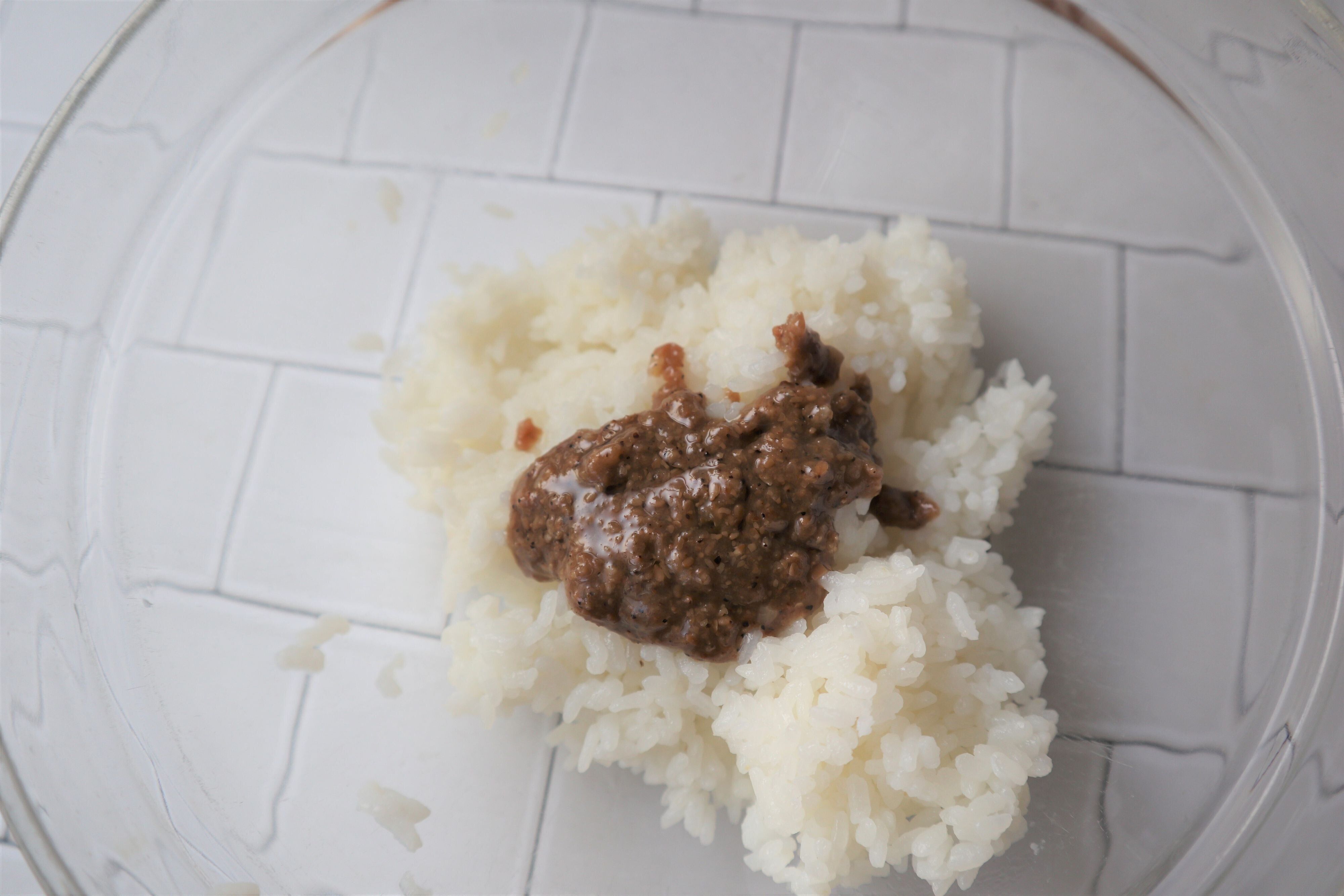 つくり方はとても簡単です。温かいごはん(200g)にデュカ風ナッツライスの素を混ぜるだけ!