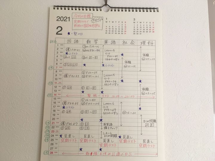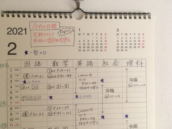 月ごとの目標を掲げておけば、モチベーションアップにもなりますね!子どもはもちろんのこと、パパやママも毎日目にするところに貼っておけば、今やらなければならないことを家族で共有できるから、成績アップにつながるかも!?