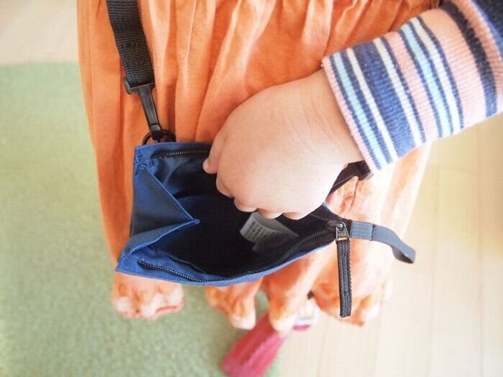 子どもに装着してみましたが、大きすぎずちょうどよいサイズ感。ちょっとしたお菓子なんかを詰めてお出かけするのにも適していそうです。そしてなんと!ベルトを調整するとウエストポーチにも早変わりします。