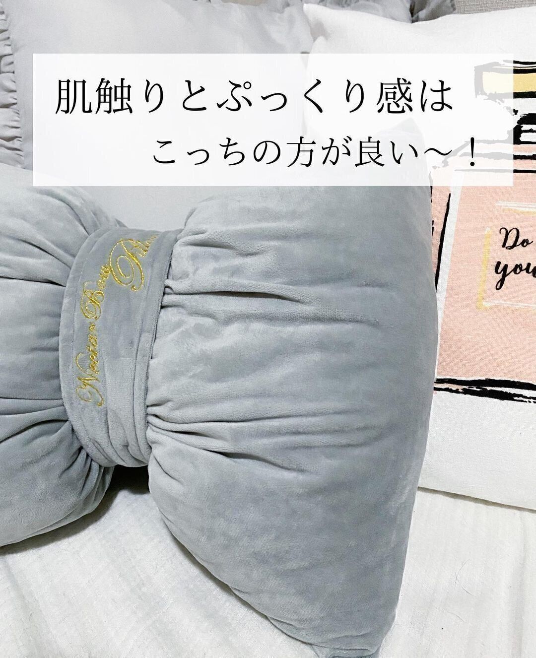 見た目がとにかくキュートなリボン型のクッション。素材が安っぽくなくて、色合いもトレンドのグレーとピンクです。2色そろえてもかわいいですね!