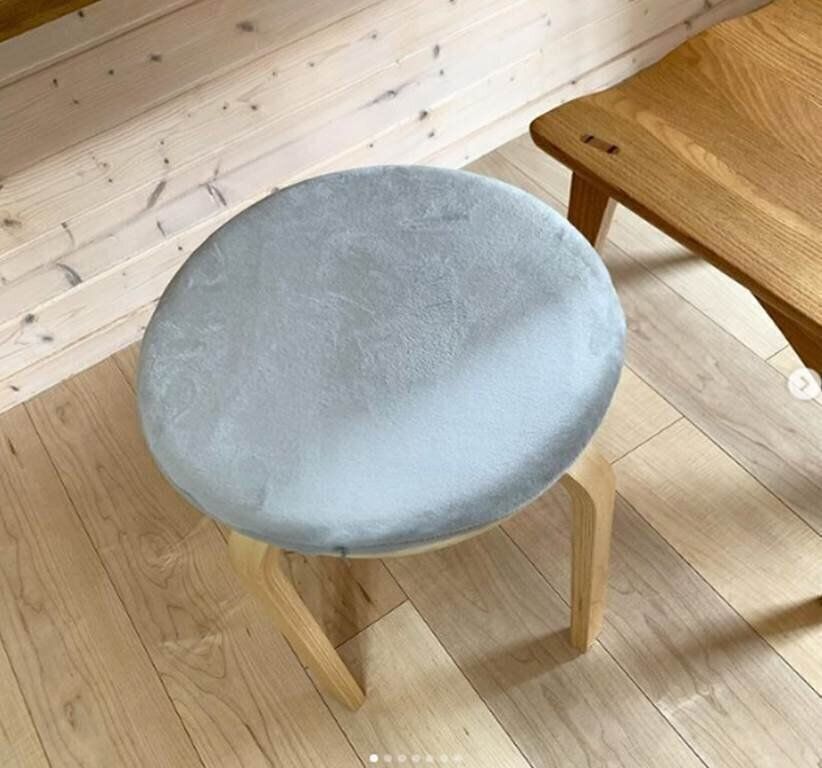 低反発クッションのラウンド型バージョン。こちらも550円アイテムです。適度なクッション性とラウンド型なのもおしゃれですよね。デザイン性だけでなく、座り心地のよさにはまって2つ、3つと買いたす人も多い優秀アイテムなんです。こんな風に丸椅子にもぴったりでとっても素敵ですね!