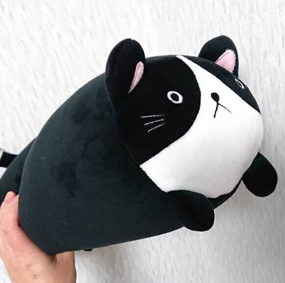 ねこちゃんもお気に入りな様子のこちらのクッションは、「ねこ抱きまくら伏せタイプ」です。なめらかで優しい手ざわり、しっかりとしたクッション性。いろんな場所で大活躍してくれます。
