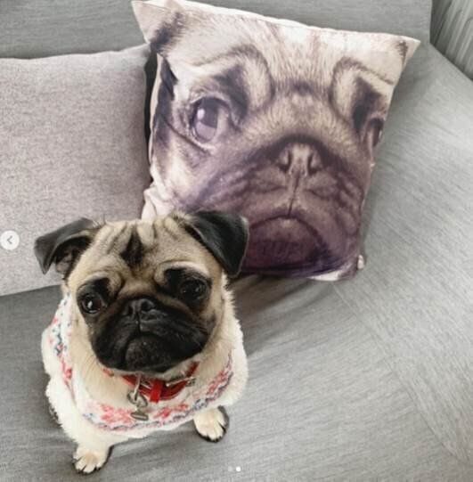 パグの顔がドーンとプリントされたクッションカバー。パグ好きのみなさんを歓喜させた大人気アイテムです。置いておくだけでインテリアとしても目をひくアイテム。「どっちがかわいいの?」なんて聞かれているみたいですね。