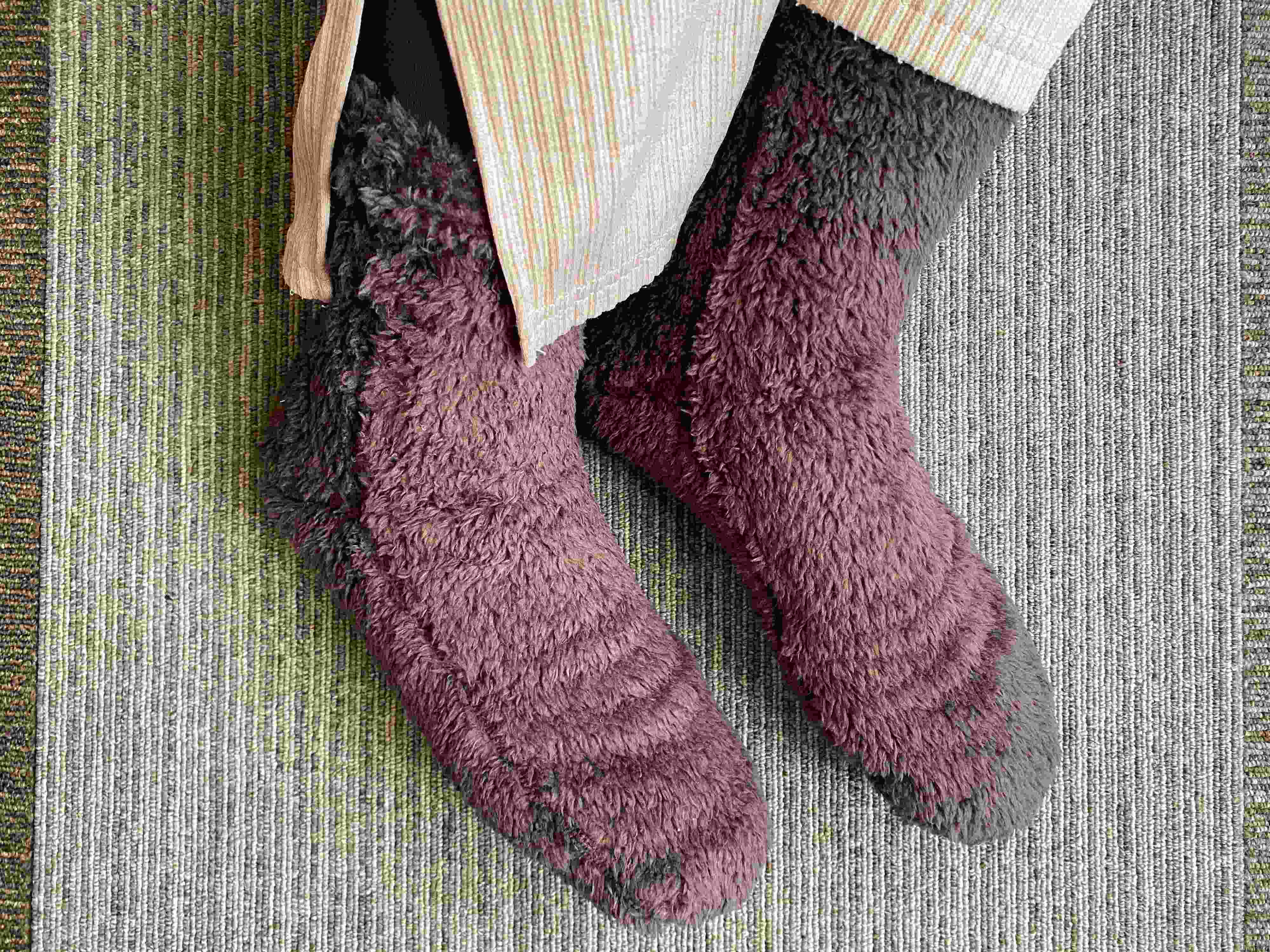 靴下の種類が充実している無印良品ですが、そのなかで筆者が冬にリピ買いしているのが、こちらの「足なり直角 ボアフリース ルームソックス」です。価格は490円(税込)。
