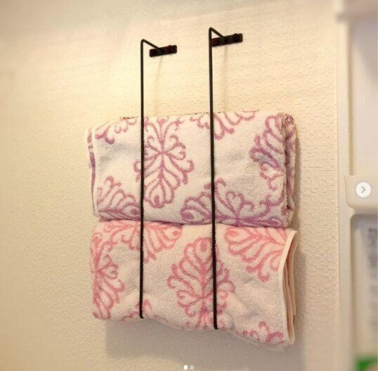 アイアンバーを縦に2本取りつければ、タオル収納としても活用することができます。さっと取り出せて使いやすそうですね。