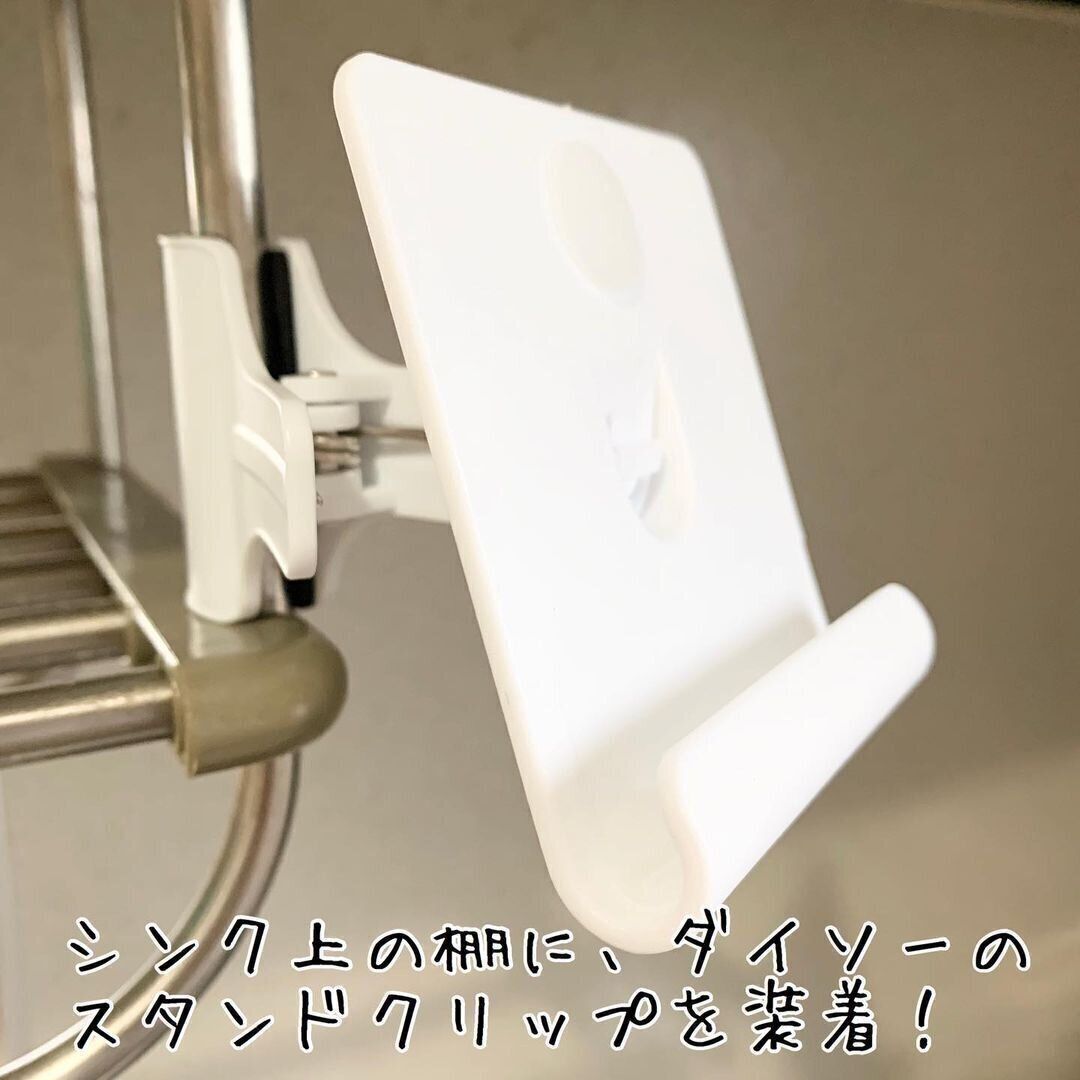 クリップ型なので、写真のようにシンク上の棚に取りつけたり、机にクリップではさんで固定して使うことができます。はさんで固定するタイプなので、狭い部分や高いところに取りつけることもできて用途が広がりそうです。