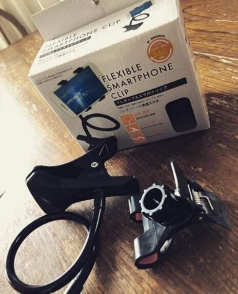 セリアで発売されると同時にSNS上がざわついたアイテムがこちら。「フレキシブルスマホクリップ」です。使い方は、先端のクリップにスマホをはさみ、土台側のクリップでテーブルなどをはさんで固定させます。アームは好きに調整できるので、どんな姿勢でもハンズフリー。これが110円とは本当に驚きですね。