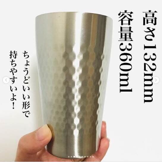 こちらの「ステンレスタンブラー」は550円アイテム。ダイソーにしてはちょっと高い?でも、ステンレスタンブラーを持っているかたなら、この価格は驚きですよね。360mlサイズで、熱い飲み物、冷たい飲み物を入れても表面温度に影響はなく、結露などもありません。保温・保冷効果もたしかなコスパの高いアイテムなんです。夏も冬も大活躍してくれるアイテムで、キャンプなどで使うのにもおすすめです!
