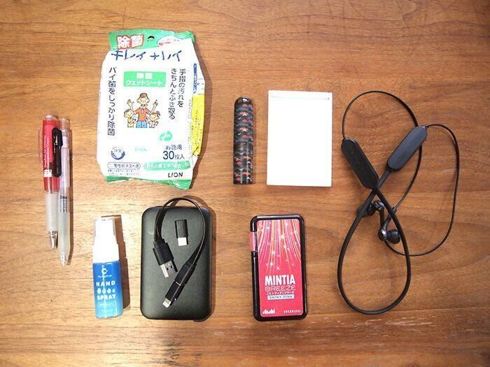 普段は両手を空けておきたいのでリュックサックを背負っているのですが、リュックサック内のポケットに甘えてどれを何個持っているのかわからない有様に…チェックしてみると、除菌ハンドスプレーが二つ入っていたりしたので、必要なものだけそろえてみました。