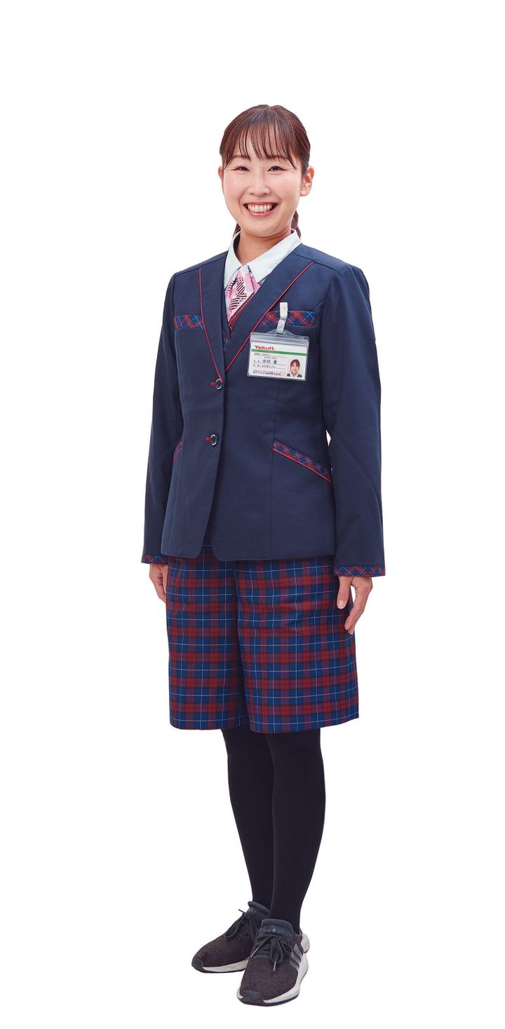 大きいリボンと赤いラインが特長!小川さんに聞いたところ、軽くて動きやすいそう!