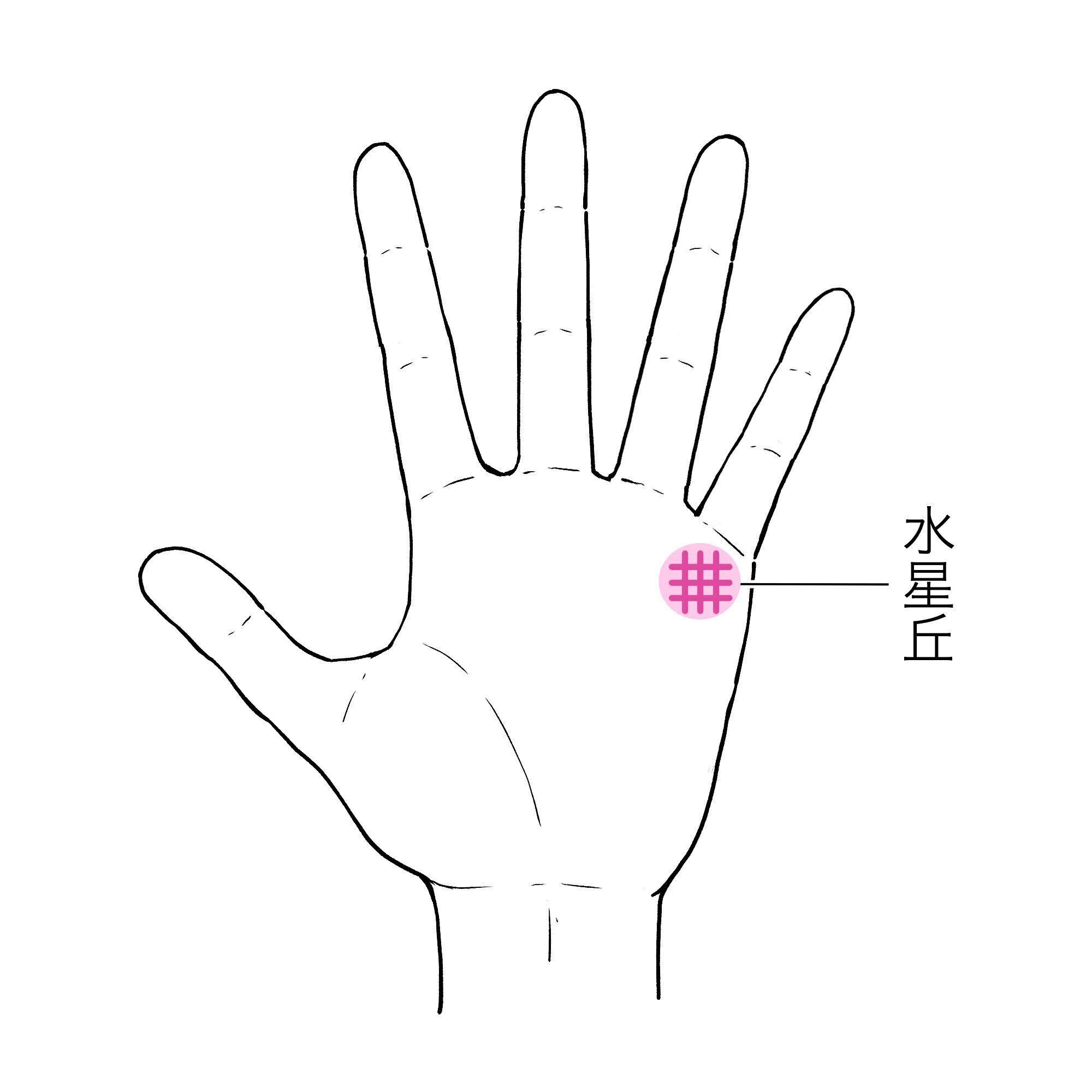 小指の下の水星丘に格子マークがある人はコミュニケーションが高く、異性の扱いも上手なタイプ。