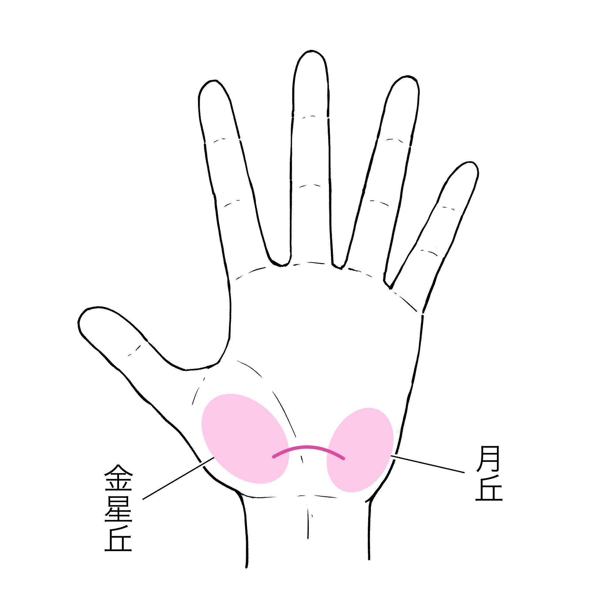月丘と金星丘を結ぶ線があったら、勝手気ままなタイプで、異性関係も自由奔放。