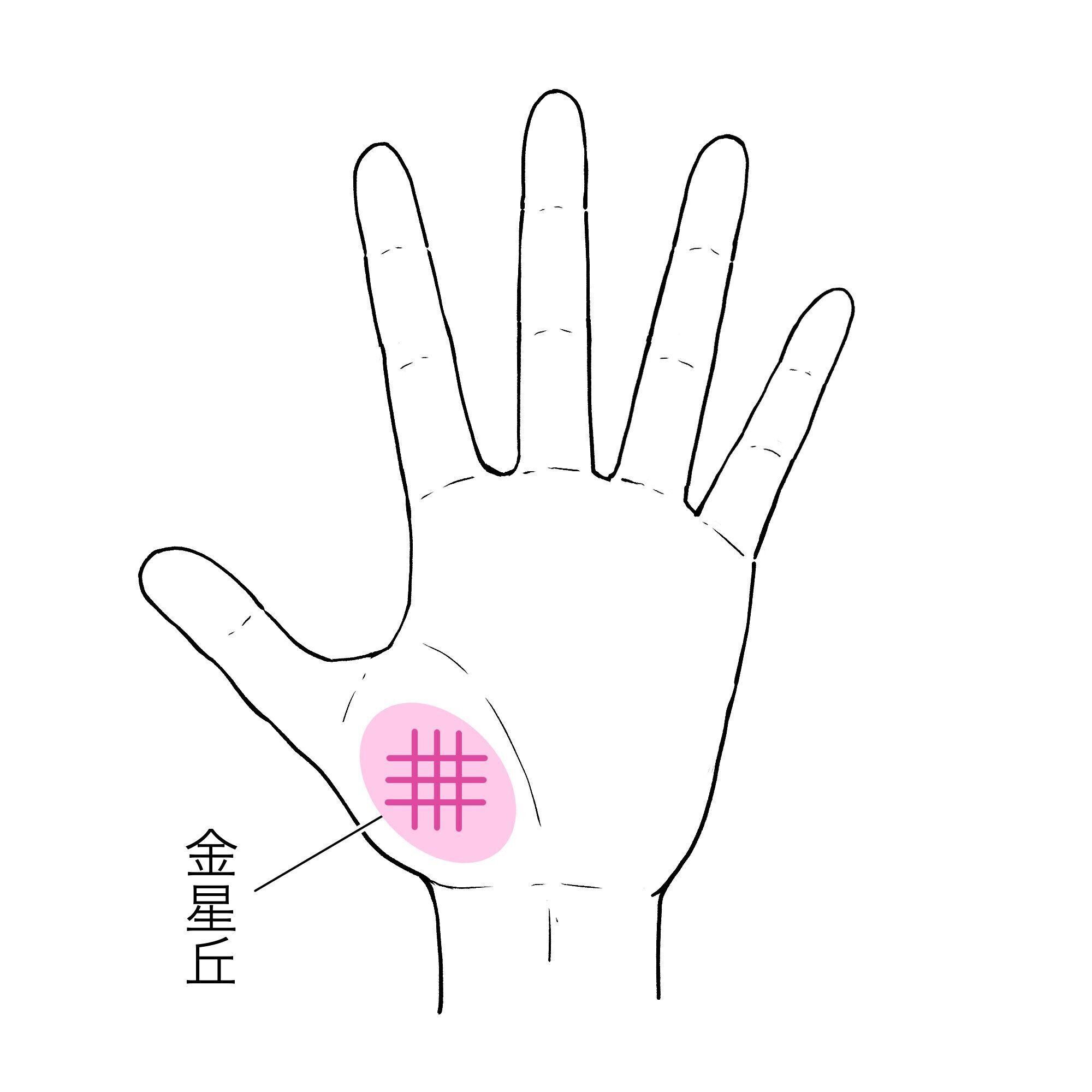 金星丘に格子のマークが出ている人は、自然にフェロモンをばらまいていて何もしなくてもモテるタイプ。