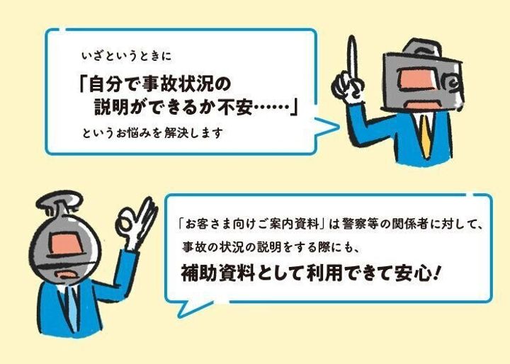 *7 通知内容の例:事故時の通知や一日ごとの走行距離、危険挙動集計の通知等。