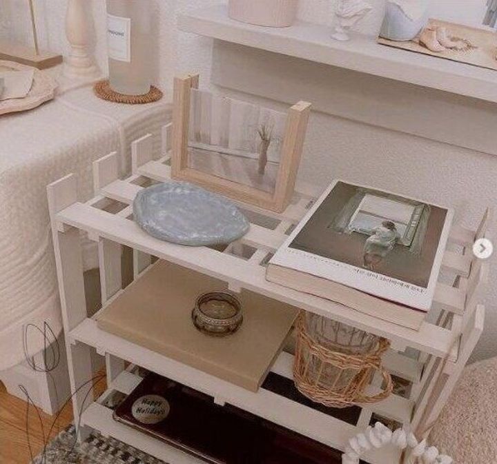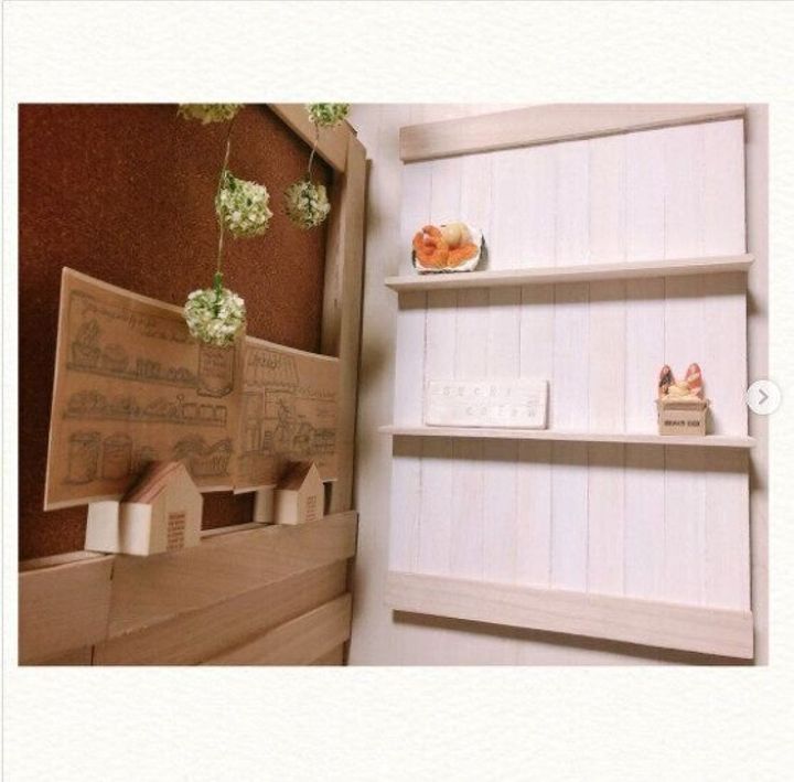 こちらのかわいい棚もダイソーのすのこを使ってつくっているそう。100均でつくられた棚とは思えないほど素敵ですね。まわりのインテリアともあっていておしゃれ!
