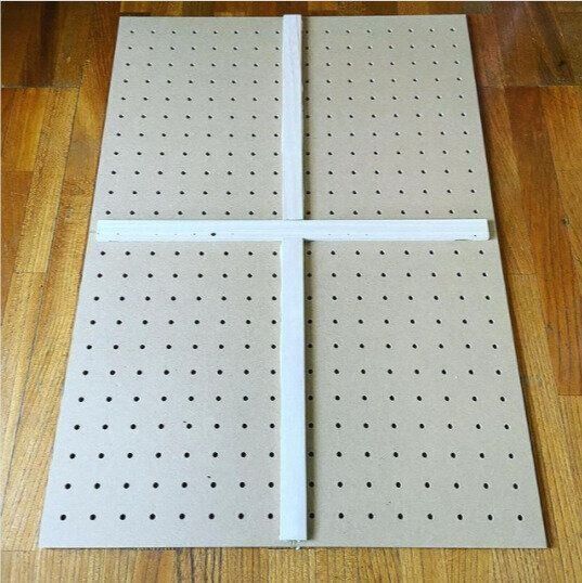 セリアの有孔ボードを接合し、その補強に100均のすのこをばらして補強として使用している例です。乾いたら着色するそう。すのこもいろいろな使い方がありますね。