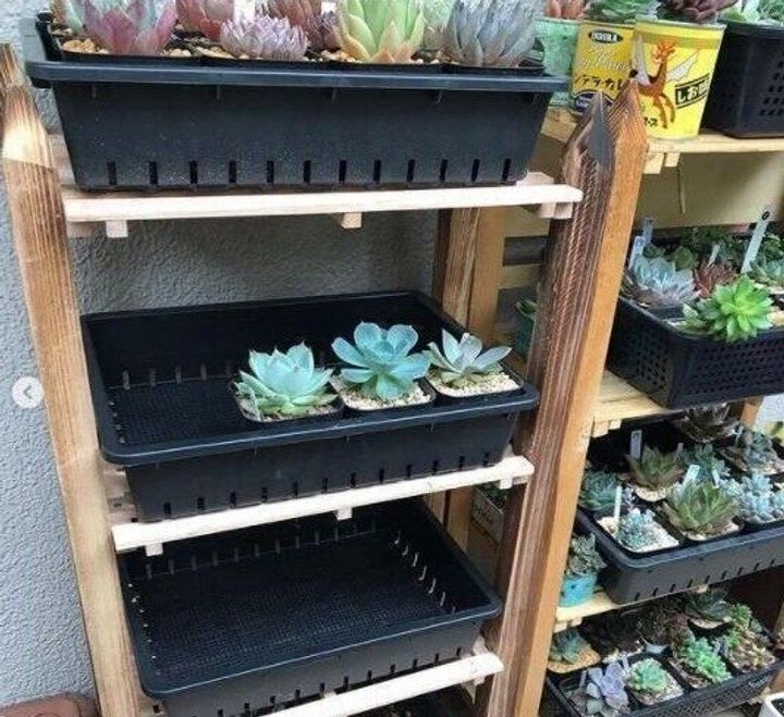 こちらはすのこを使い、多肉植物を置く棚をDIYした例です。すのこを3枚使用して作ったそう。既製品にはない雰囲気があって素敵ですね。かわいい多肉植物たちとの相性抜群!