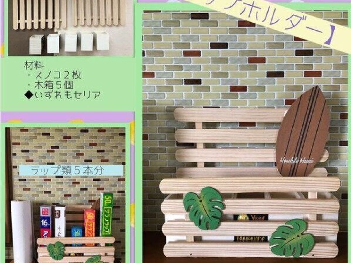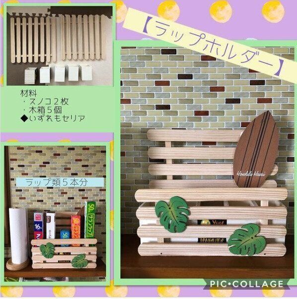 100均のすのこと小箱をボンドと釘で貼り合わせれば、DIY初心者でも簡単にナチュラルテイストのラップホルダーがつくれちゃいます。お好みでカラーを塗ったり、木製のガーランドを取りつければ雰囲気もガラリと変わり、よりおしゃれになります。