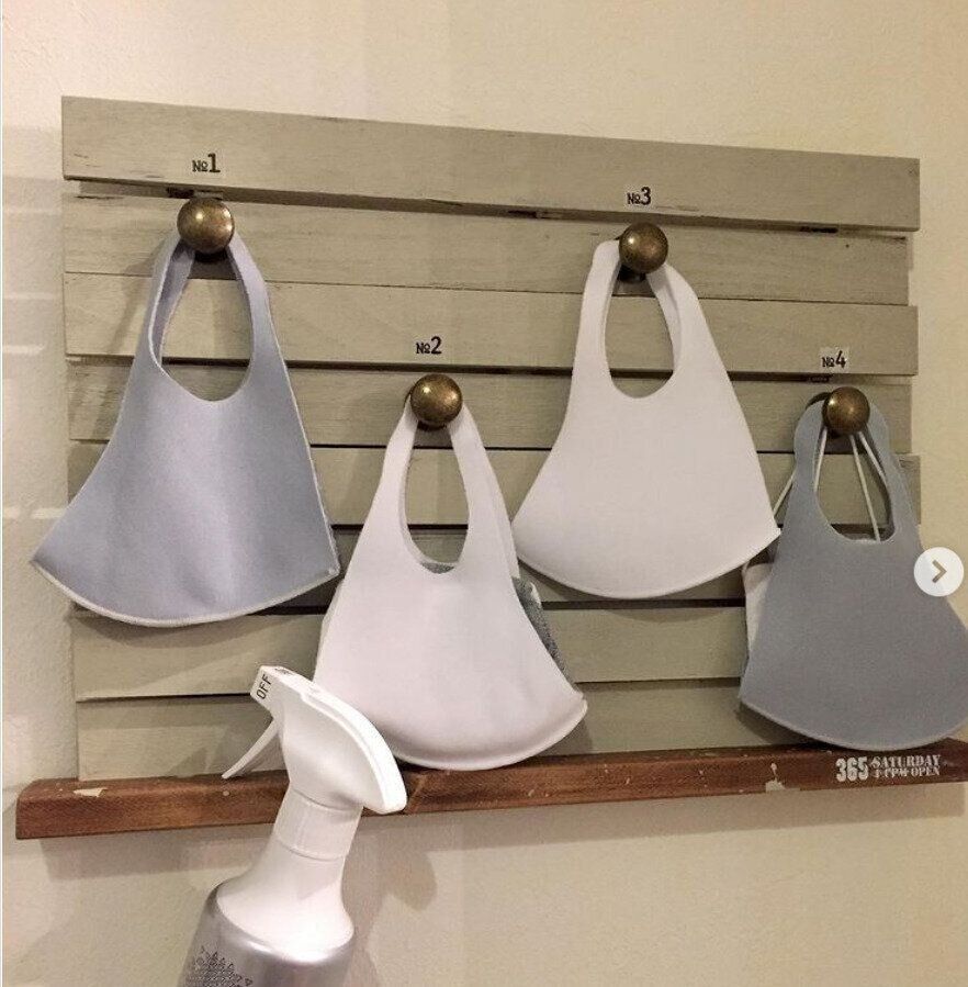 こちらは、100円ショップのすのこを使ったおしゃれなマスクホルダーです。マスクをかけて別々に保管しておけるので、だれのマスクか分かりやすくお手入れも簡単に。マスクホルダーがインテリアにもなる素敵なアイデアです。