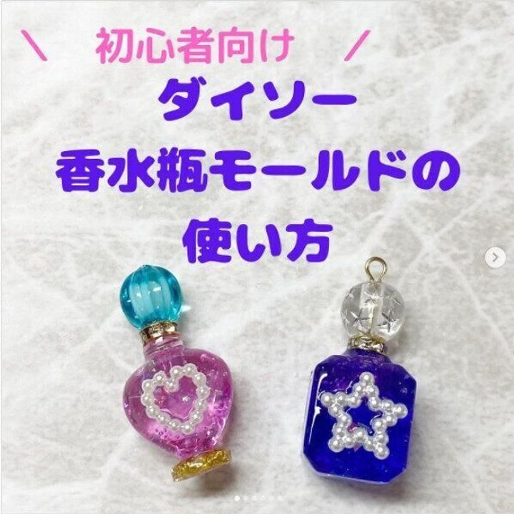 ダイソーの香水モールドはかわいい作品がつくれると大人気のレジンアイテムですが、細かな部分もあり少し初心者にはむずかしいポイントもあるんだとか。そんなときは「lindisima_811」さんのアイデアを参考につくれば初心者でもかわいい香水びんがレジンで簡単につくれちゃうのでぜひ参考にしてみてください。