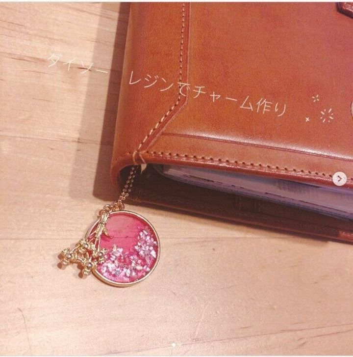 こちらのおしゃれなチャームはなんとダイソーで販売されているレジングッズでつくられたんだとか。雑貨屋に売っていてもおかしくないほどのおしゃれなアイテムをつくれるというだけあってハンドメイド好きさんはこぞってダイソーのレジンアイテムを購入しています。