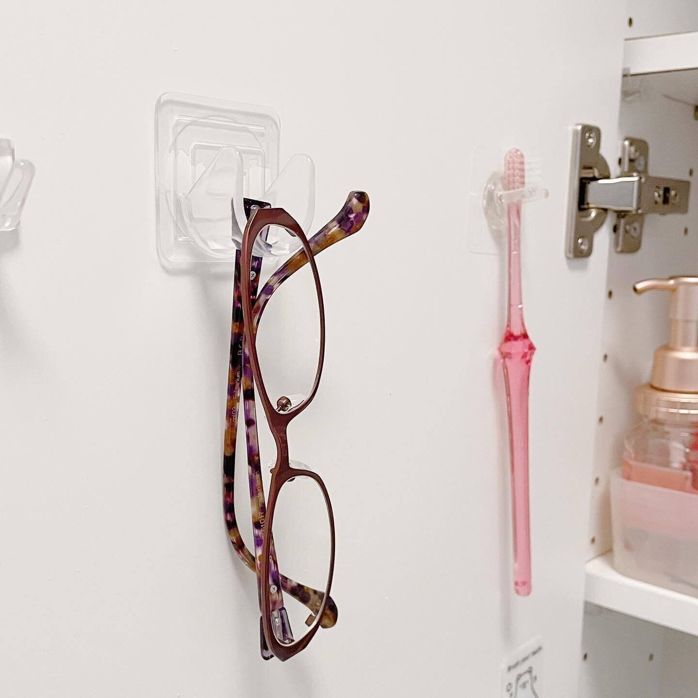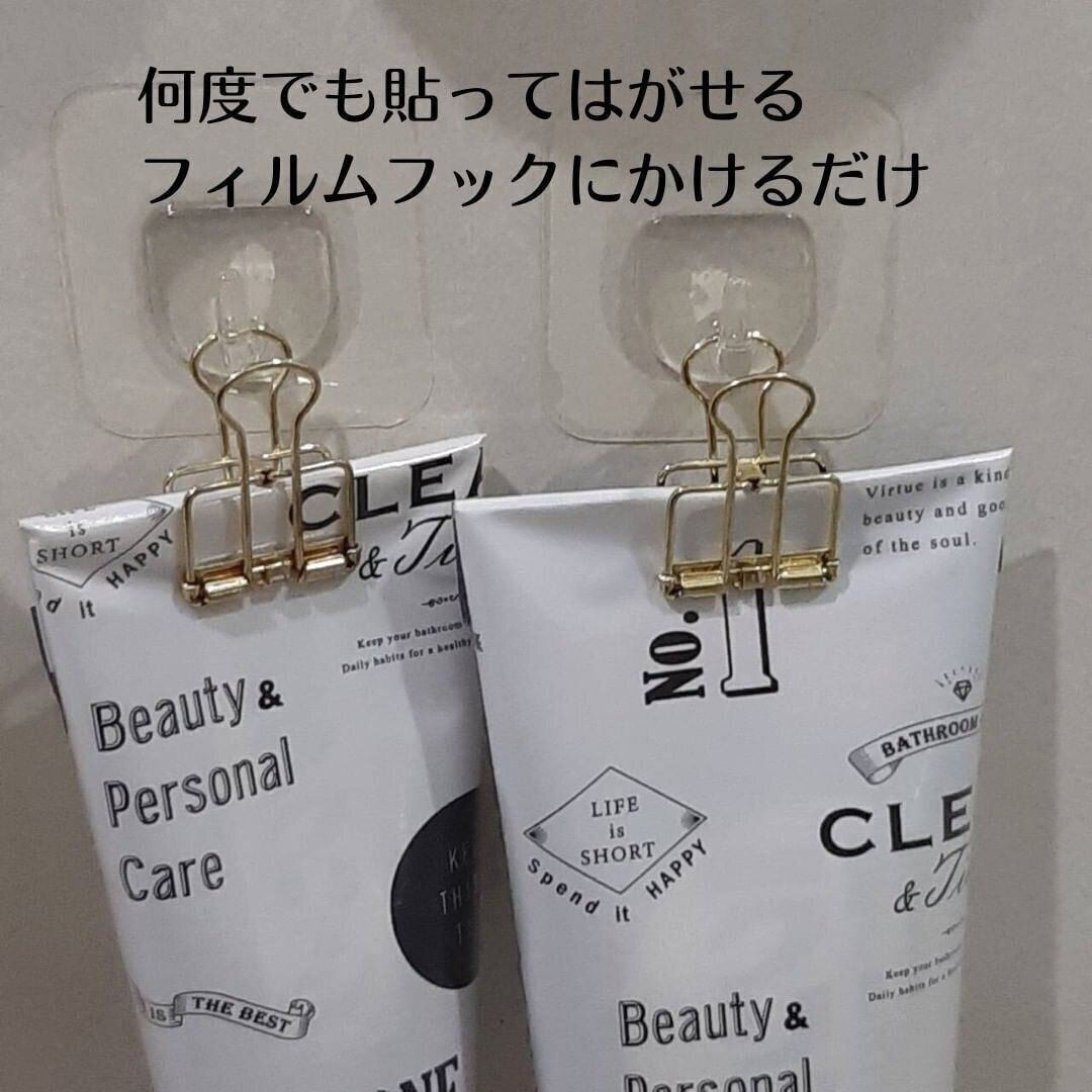 「クリアマルチフック」を使った、素敵な収納アイデアです!お掃除グッズやバス用品、小物の収納にもぴったり。公式サイトによると「両面テープタイプ」や「接着剤タイプ」もあるので、用途に応じて使い分けもおすすめです。