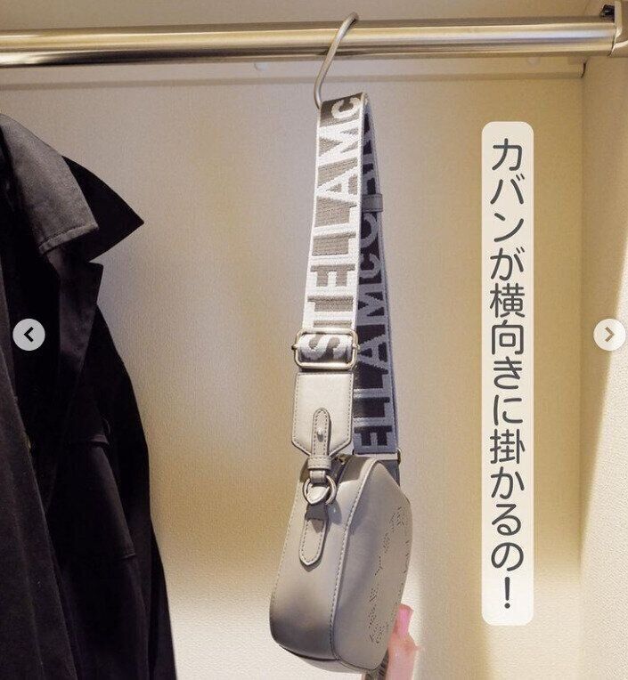 カバンを横向きにかけることができ、コンパクトに収納できる「アルミツイストS字フック」。耐荷重量も約5kgあり、キャンドゥやダイソーなどでも取り扱いがあるようです。シンプルなデザインで使いやすそうですね!