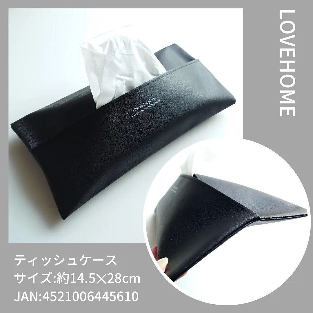 本物のレザーのような質感が高見えするティッシュボックスカバーです。家の中で使うのはもちろんのこと、車の中で使うのにおすすめです。生活感をなくしてくれるので、車内のインテリアをシックにまとめてくれます。ボタンで留めるタイプのティッシュカバーなので交換するときも簡単ですね。黒以外にはキャメルがあり、お好みで選べます。220円とは思えないクオリティのティッシュカバーです。
