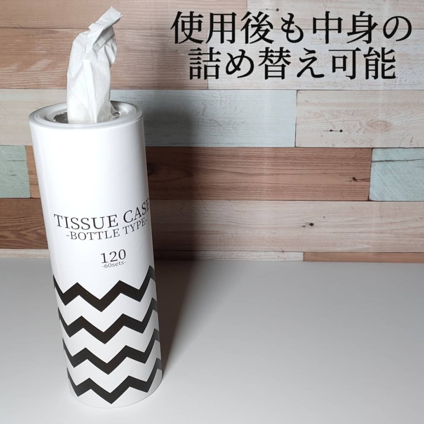 ダイソーで購入できる、スリムなボトル型のティッシュケース。スタイリッシュなうえに場所をとらないと人気で、洗面所やキッチン、車内など幅広い空間で使えそうです。使用後も、中身を詰め替えて使えるというのもポイントですよ。