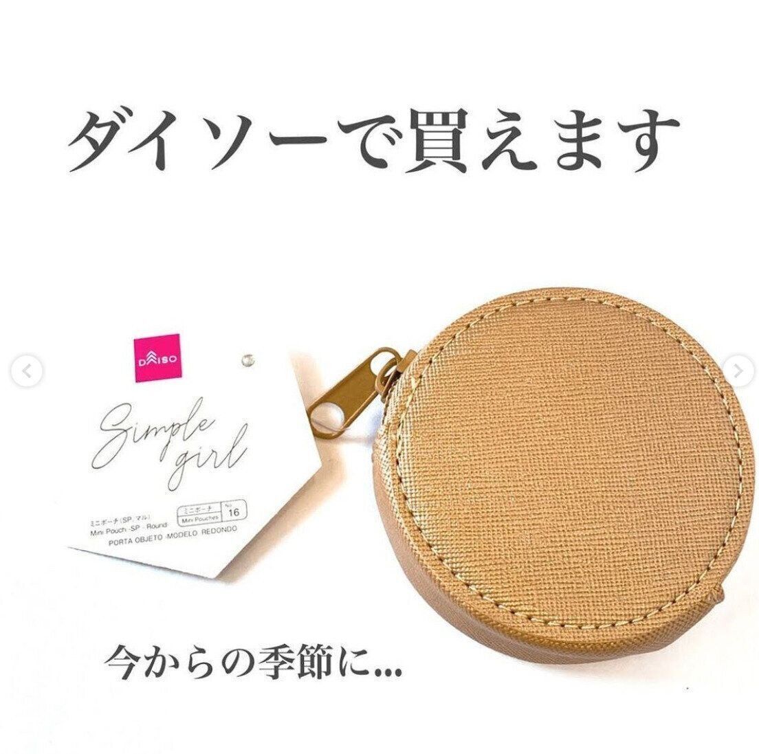 ころんとかわいい、ダイソーの手のひらサイズのミニポーチ。ファスナータイプで、意外とたくさん入るすぐれものです。かさばらないので、サプリメントや小銭を入れて持ち歩くのにもぴったり!シンプルでおしゃれなデザインで、合わせやすいのもうれしいところです。