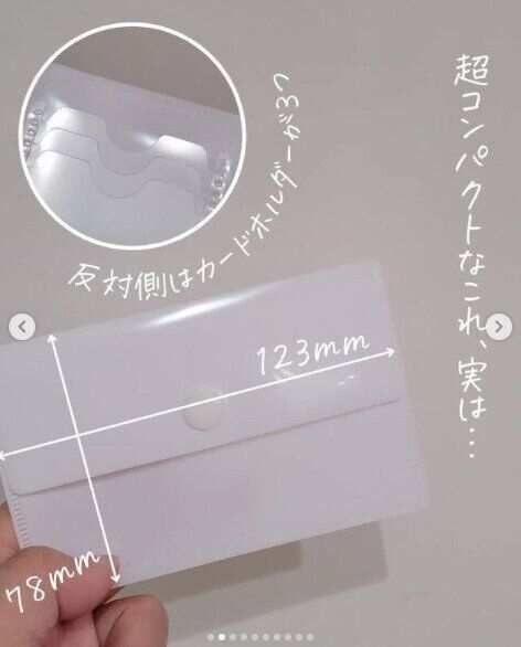 こちらはキャンドゥのコンパクトなお財布。横は123mm、縦が78mmと超コンパクト。小さなバッグにも入るので、便利そうですね。