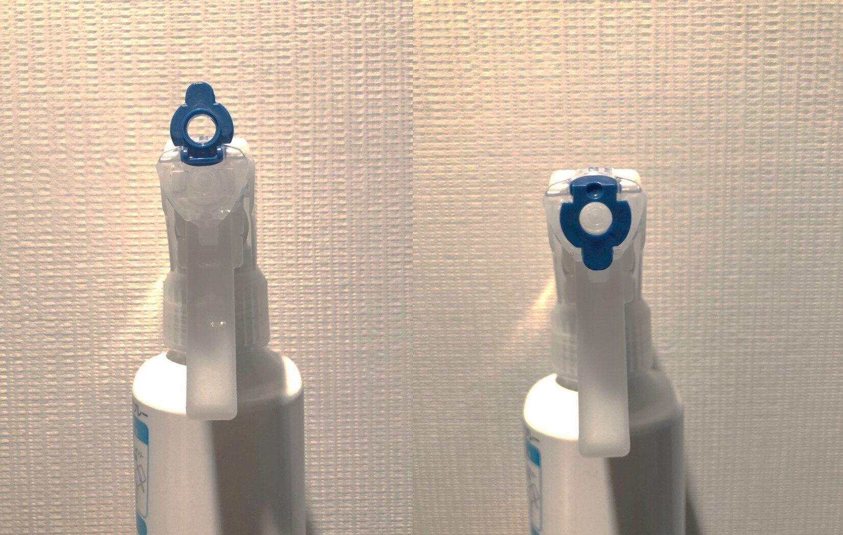 写真のように、ノズルを切り替えることで広く吹きかける・ピンポイントに吹きかけることができます。