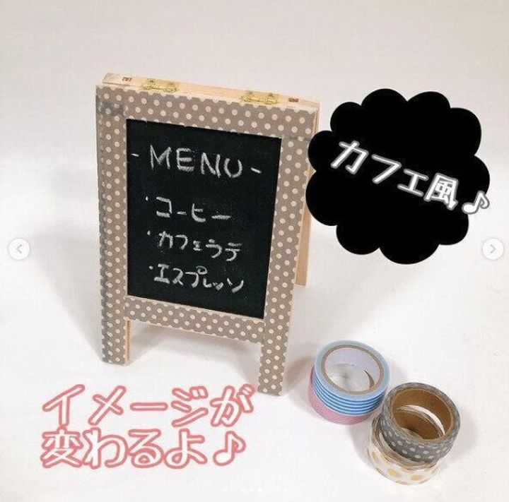 黒板とコルクボードが、両面についているこちらのアイテムは、カフェ風インテリアとして人気の商品。黒板の部分に晩御飯のメニューを書くと、お家で外食気分を味わうことができます。マスキングテープを貼ってカスタマイズするのもおすすめです。