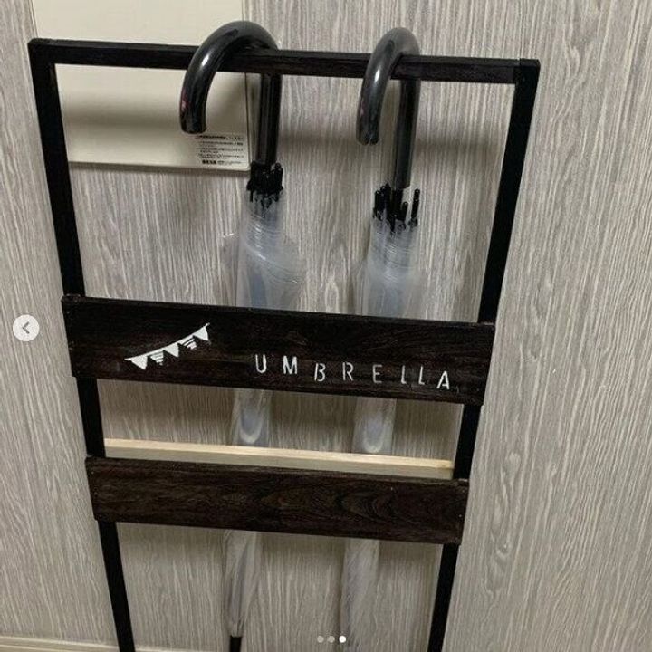 木材・ペイント・ステンシルシート・L字金具を使うと、インテリアショップにありそうなおしゃれな傘立てが完成!すべてダイソーでそろうので、コスパも最高です。スリムな形状で、場所を取らないのもうれしいポイント。