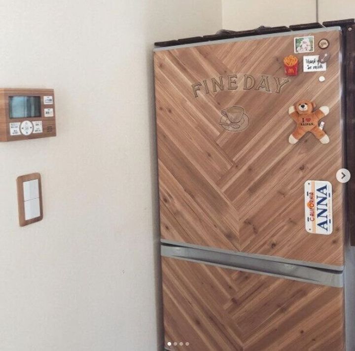 貼るだけでお部屋の雰囲気が一気に変わる、ダイソーのリメイクシート。リアルな木目が特徴のリメイクシートを冷蔵庫に貼ると、無機質な家電も温かみのあるカントリー風家具に変身!