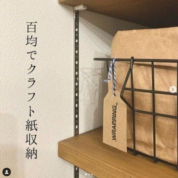 こちらはダイソーのワイヤーバスケットとクラフト紙で収納かごをDIYした例です。中が見えない収納ボックスなので、いろいろ入れられそうですね。タグもおしゃれ!