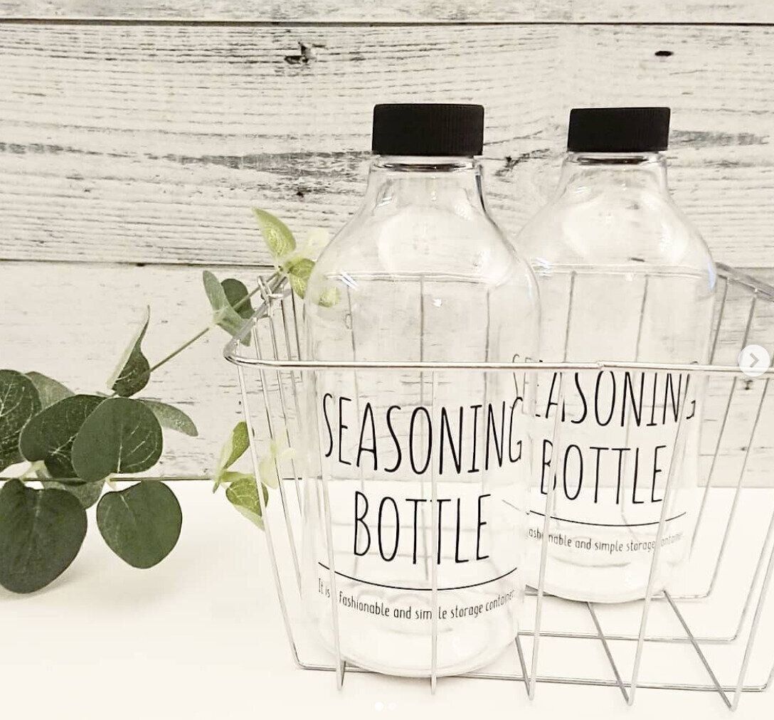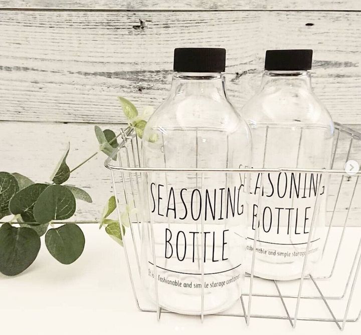 キャンドゥで購入できる、シンプルかつおしゃれなデザインのロゴ入り調味料ボトル。約650ml入るたっぷりサイズです。中身が見えるので取り扱いやすく、ボトルのフタはペットボトルタイプなので、開け閉めも簡単です。キッチンに置いておくだけで気分が上がって、お料理がはかどりそうですね!