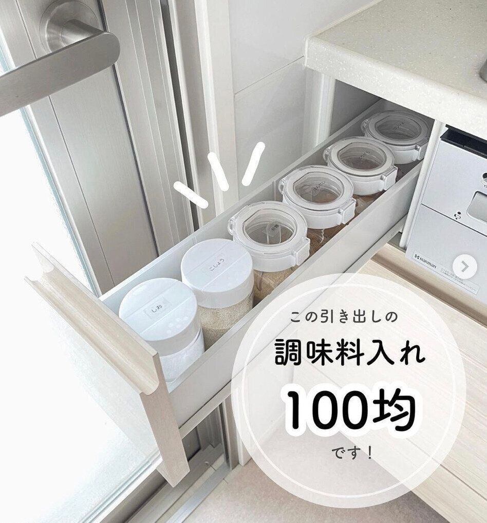 中にはお茶パックを入れたり、調味料を入れたり、片手で開け閉めができるので料理中の時短にも繋がりますね。長方形で収納時も並べやすいというのも人気のポイントです。