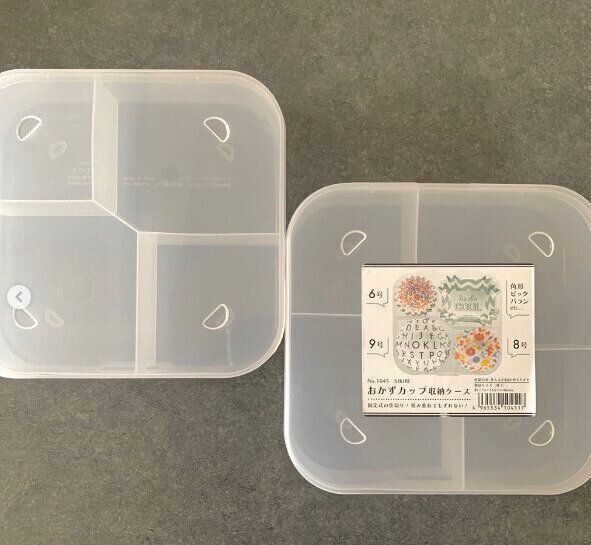 セリアで人気なのが、いろいろなサイズのおかずカップをまとめて収納できる「おかずカップ収納ケース」。半透明で中に何が入っているのかもわかりやすいのがいいですね。小さく小分けされているので、離乳食などほんの少しの食材入れるのにもぴったり!