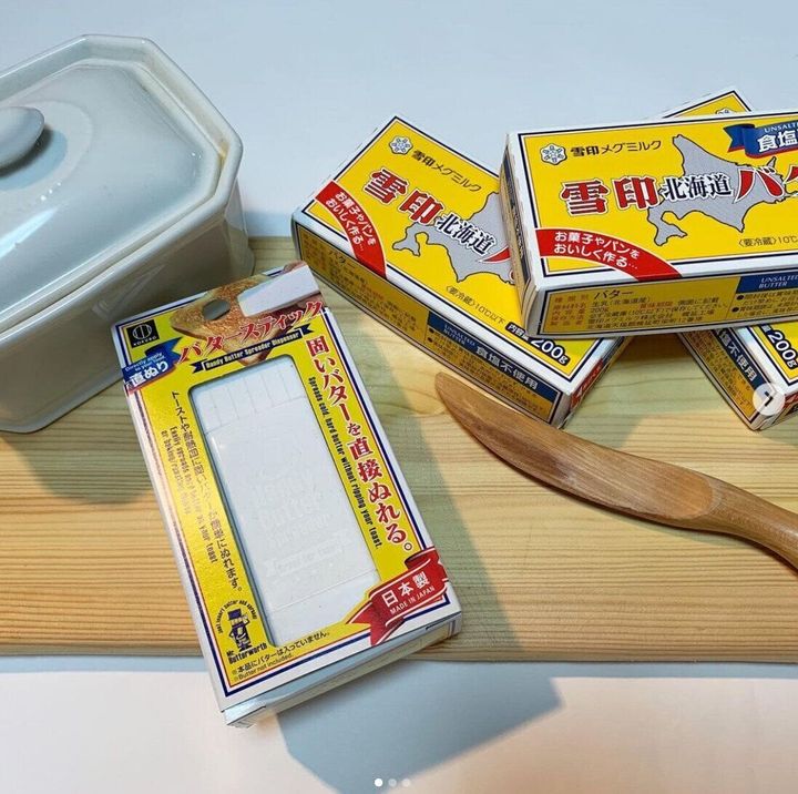固いバターを容器にセットすることで、直接パンなどに塗ることができる「直ぬりバタースティック」。こちらは、ダイソーやセリアでもお取り扱いがあるようです。バターをその都度カットする必要がなく、スマートに立てて収納できるのも人気の秘密。フタ部分に目盛りがついているので、計量も簡単です!