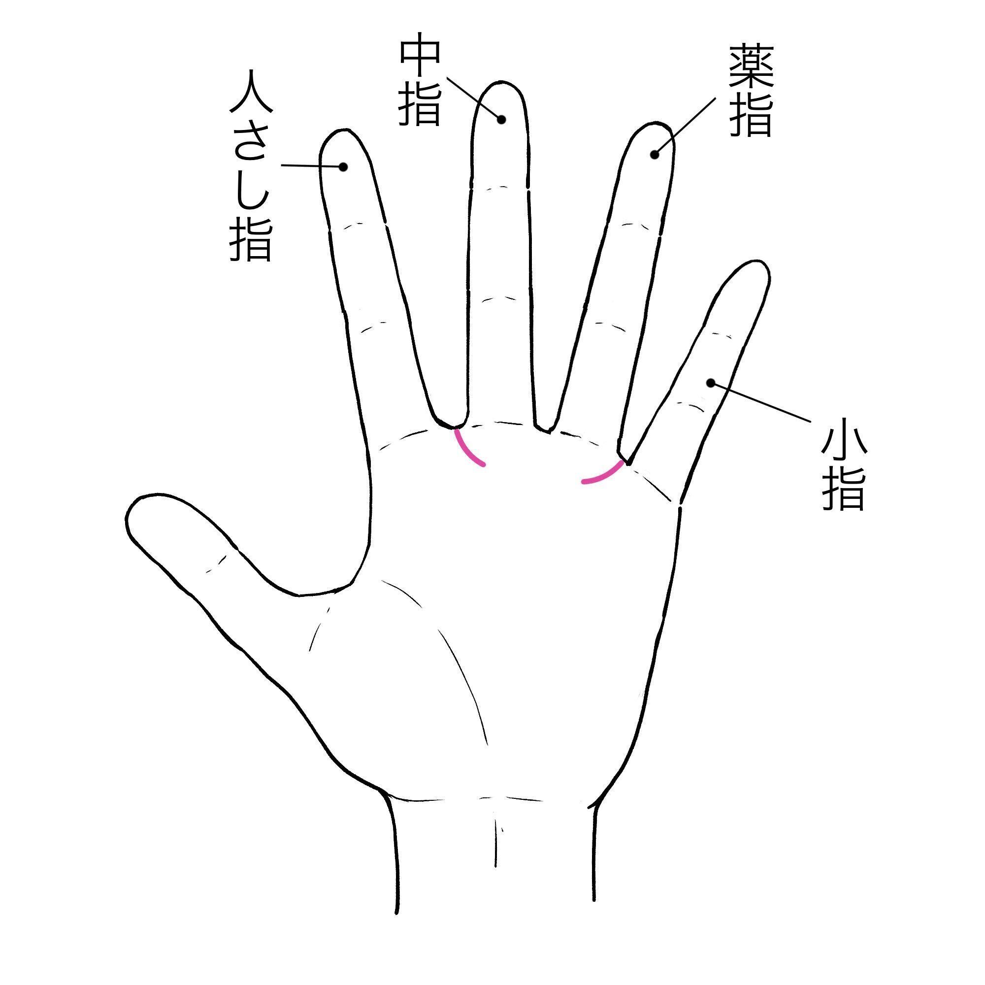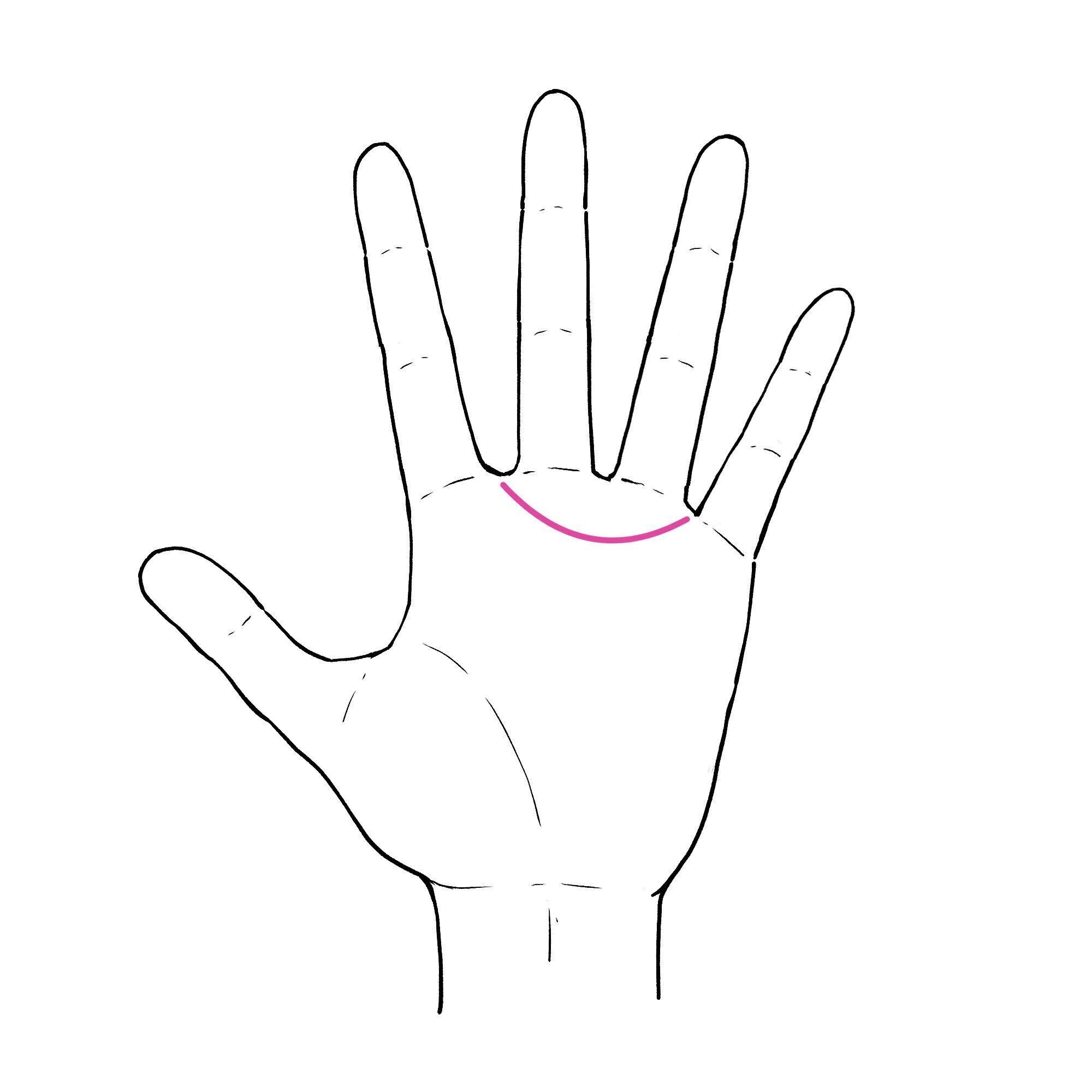 人差し指と中指の間から、薬指と小指の間にかけて半円を描く線である金星帯。
