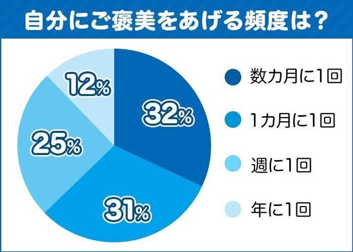 その頻度は「数カ月に1回」という人がいちばん多かったけれど…仕事に家事に育児と、日々頑張っているのだから、せめて月イチで自分をほめてあげましょう!